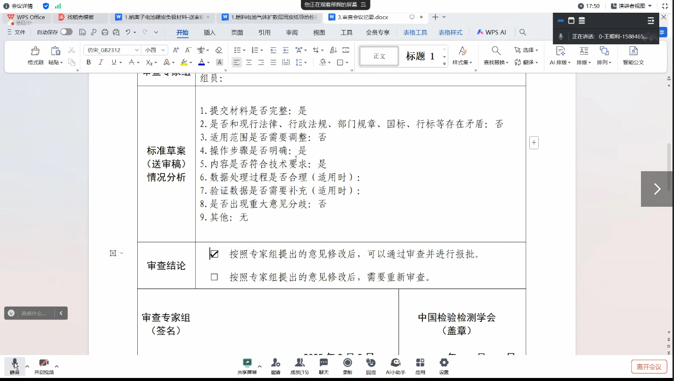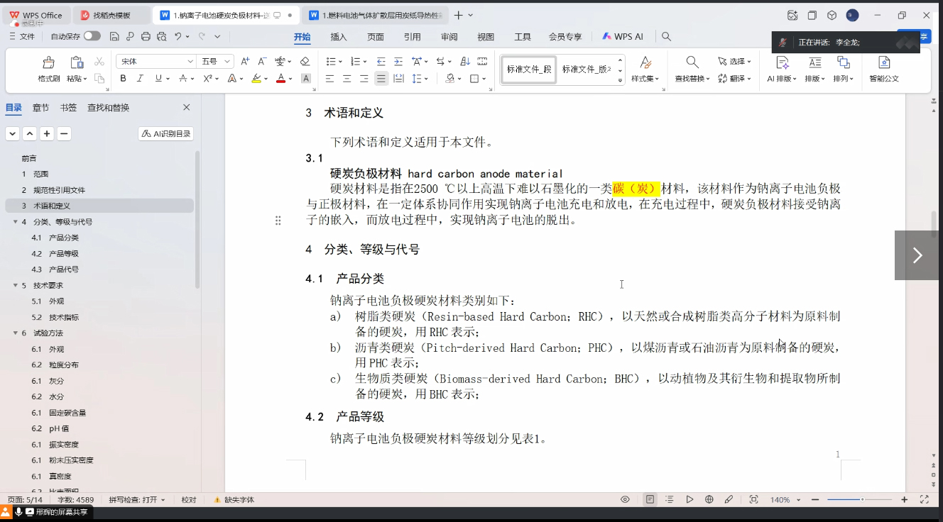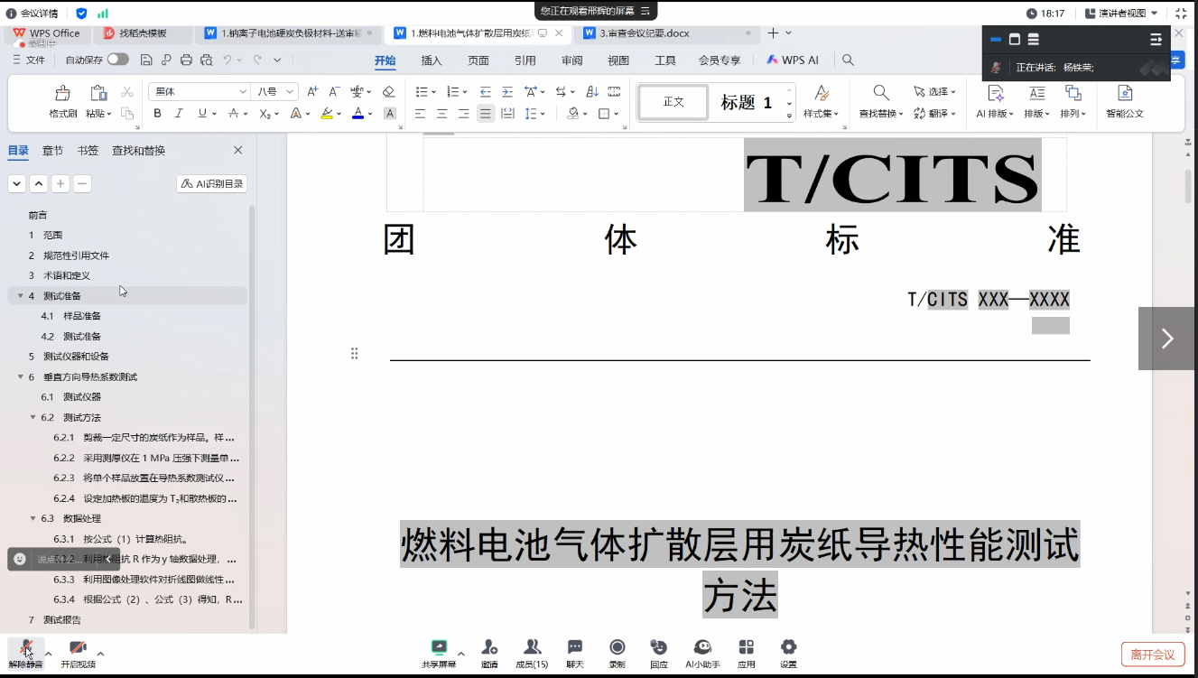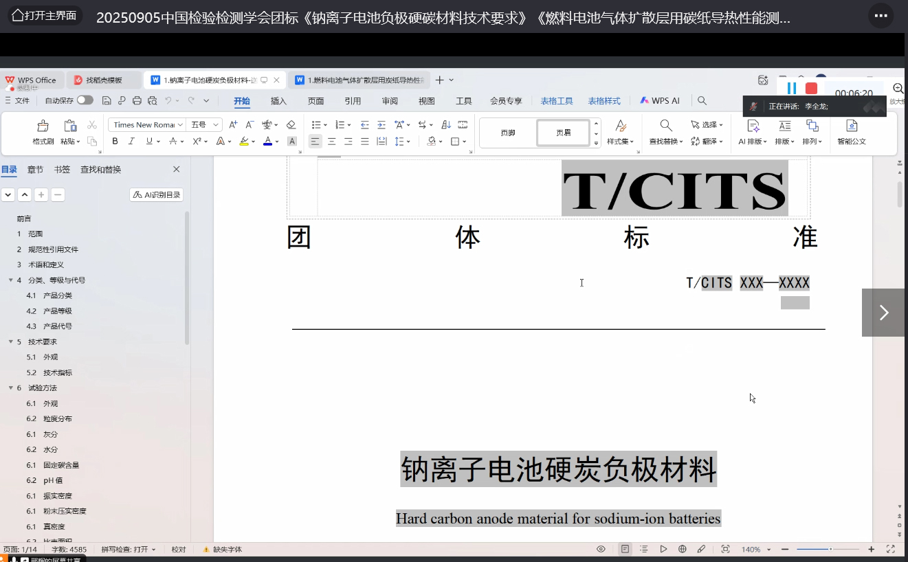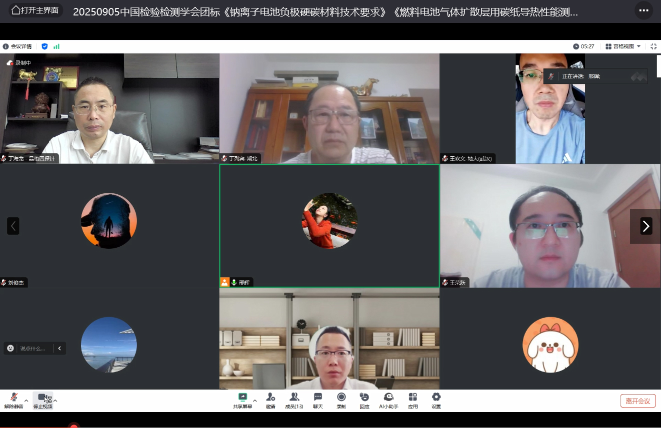 গ্রুপ স্ট্যান্ডার্ডগুলির খসড়াটির জন্য পর্যালোচনা সভা "সোডিয়াম-আয়ন ব্যাটারিগুলির অ্যানোডের জন্য হার্ড কার্বন উপকরণগুলির জন্য প্রযুক্তিগত প্রয়োজনীয়তা" এবং "জ্বালানী কোষের গ্যাসের প্রসারণ স্তরটির জন্য কার্বন পেপারের তাপ পরিবাহিতাটির জন্য
