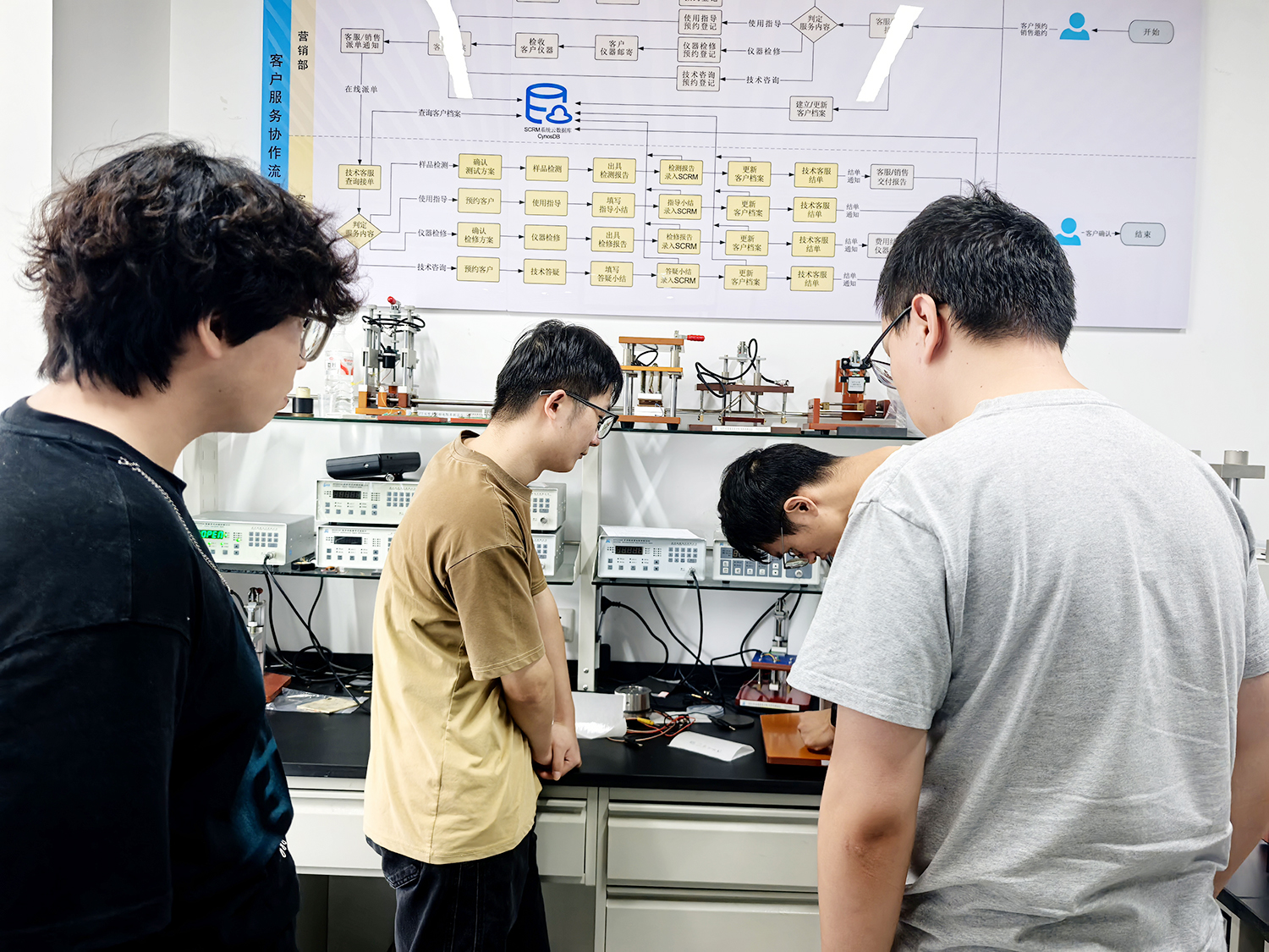 সম্প্রতি, ঝেজিয়াং রুহে নিউ এনার্জি মেটেরিয়ালস কোং, লিমিটেডের প্রযুক্তিবিদরা সুজু জিংজ ইলেক্ট্রনিক্স কোং, লিমিটেড দেখার জন্য সলিড-স্টেট ব্যাটারি ইলেক্ট্রোলাইট ঝিল্লি এবং বোতাম সেলগুলির স্ব-বিকাশিত নমুনা নিয়ে এসেছেন। তারা সলিড-স্টেট ব্যাটারি ইলেক্ট্রোলাইট ঝিল্লি এবং বোতাম কোষগুলির ভলিউম প্রতিরোধের মধ্যে পারস্পরিক সম্পর্ক পরীক্ষা এবং যাচাই করতে আমাদের যন্ত্রগুলি ব্যবহার করতে চেয়েছিল, যার ফলে সরাসরি ঝিল্লি পরীক্ষার পদ্ধতির কার্যকারিতা যাচাই করে।